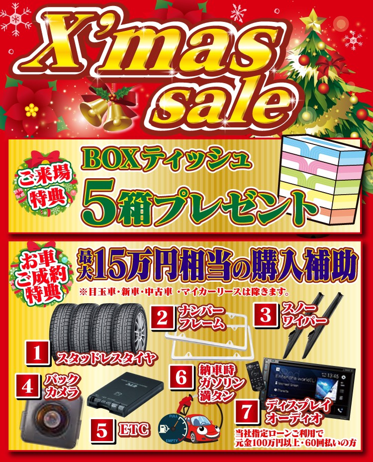 12月のカーパレットは、✨クリスマスSALE開催!!『最大15万円分ご購入補助』✨